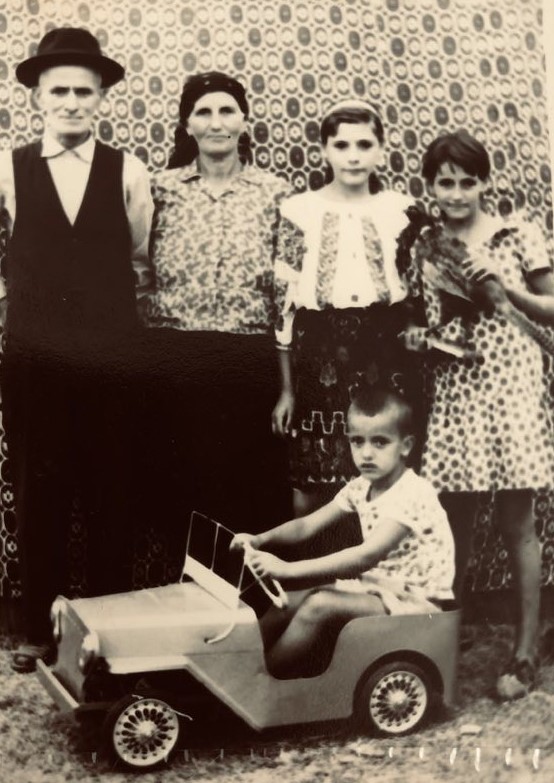 3.Impreuna cu bunicii din partea tatalui, la balci, in 1973; de la stanga la dreapta: Ristea, Florica, Nuti, Mimi, iar in masinuta Nelu
